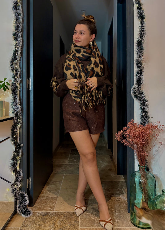 Écharpe à paillettes taupe - L’accessoire chic et scintillant de l’hiver