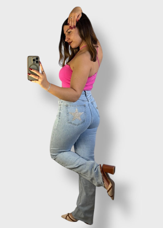 Jean Mom Détails Étoiles sur les poches arrières – Stella