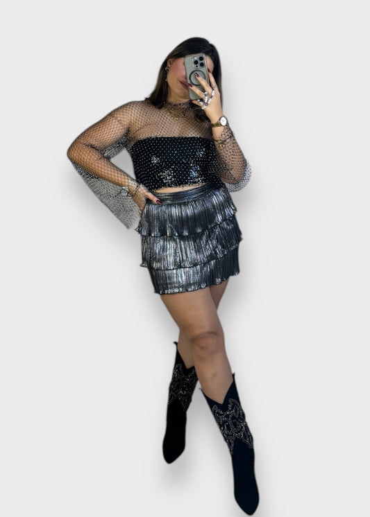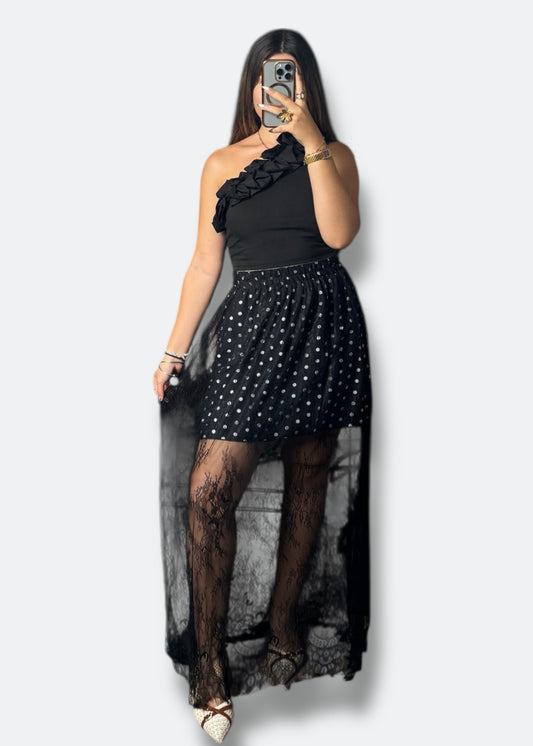 Jupe short Mélissa plissée noire avec ceinture amovible - Tendance 2024/2025