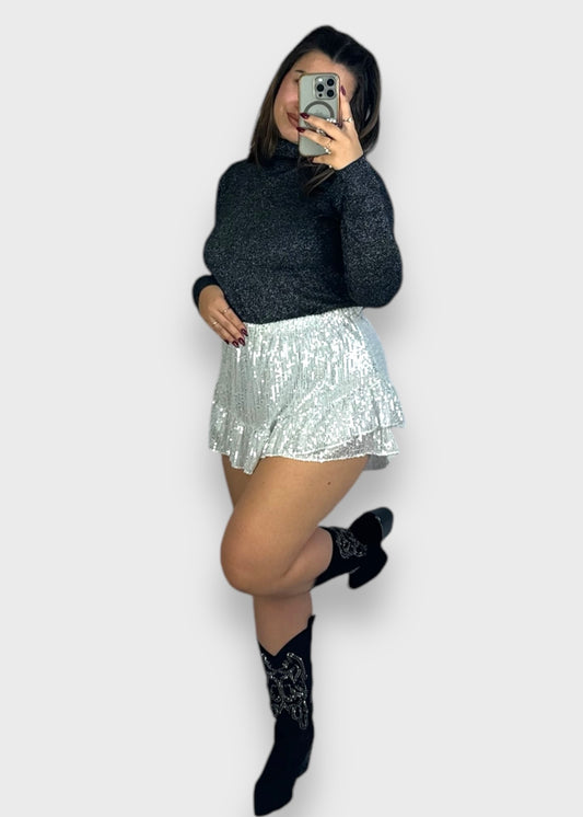 Jupe short Mélissa plissée grise avec ceinture amovible - Tendance 2024/2025