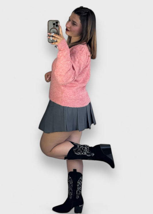 Jupe short Mélissa plissée grise avec ceinture amovible - Tendance 2024/2025