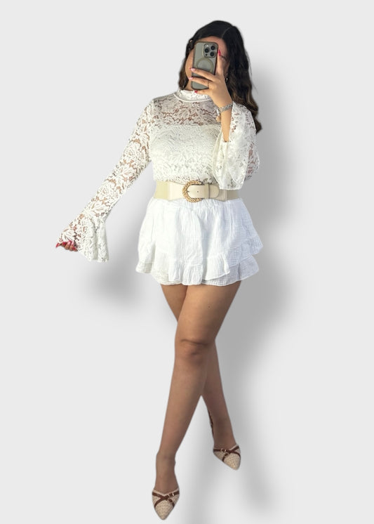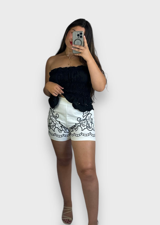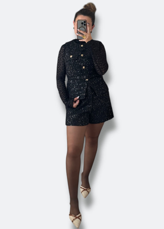 Jupe short Mélissa plissée noire avec ceinture amovible - Tendance 2024/2025