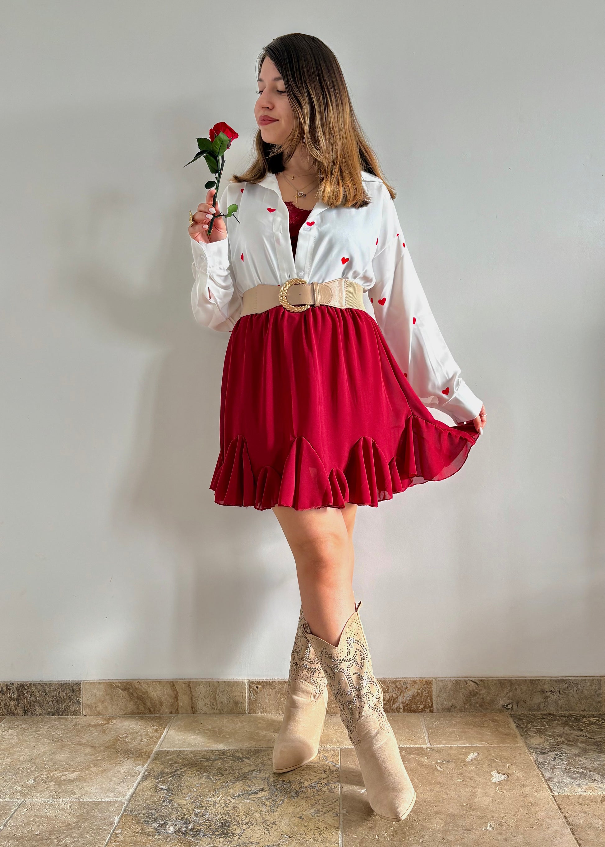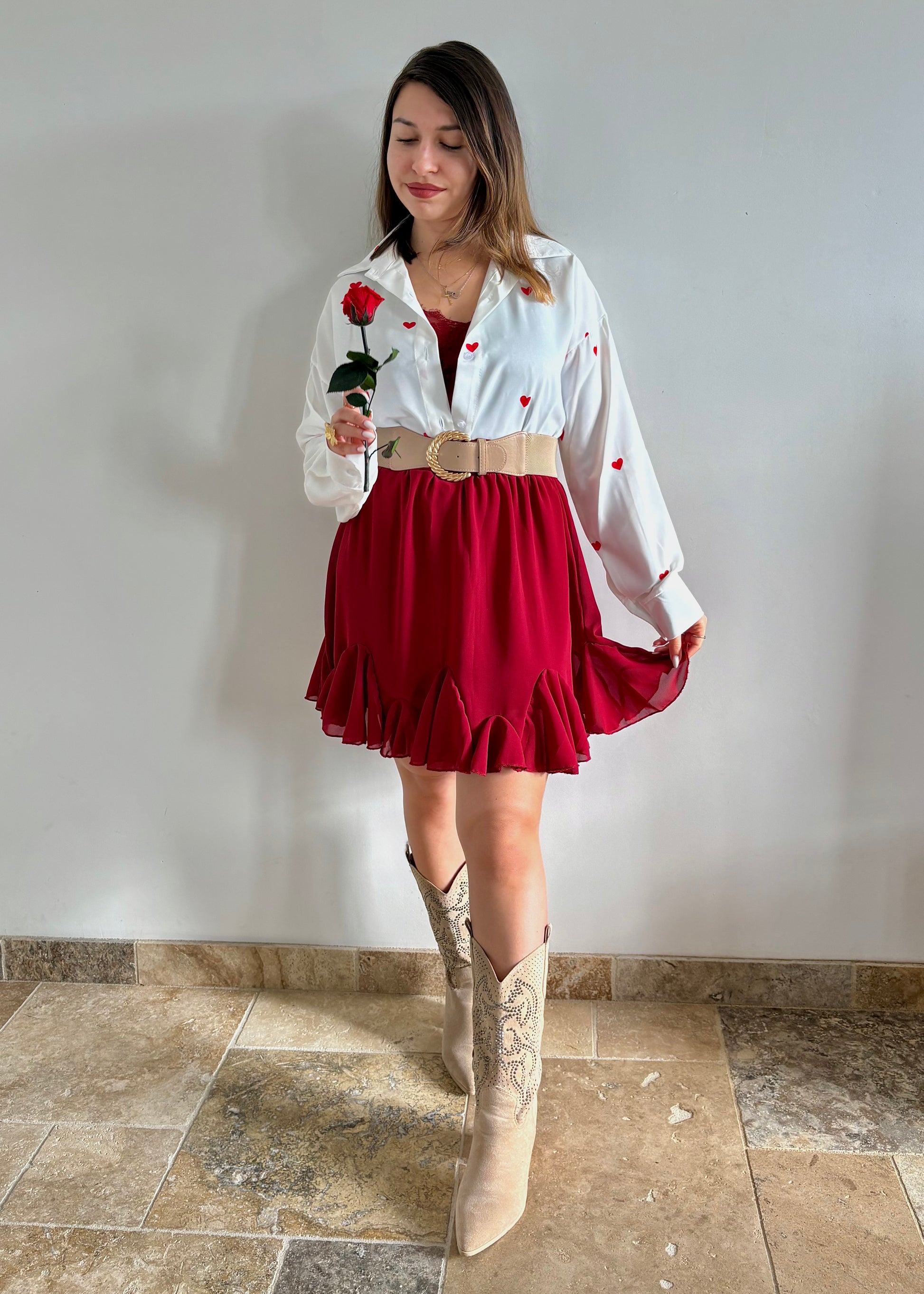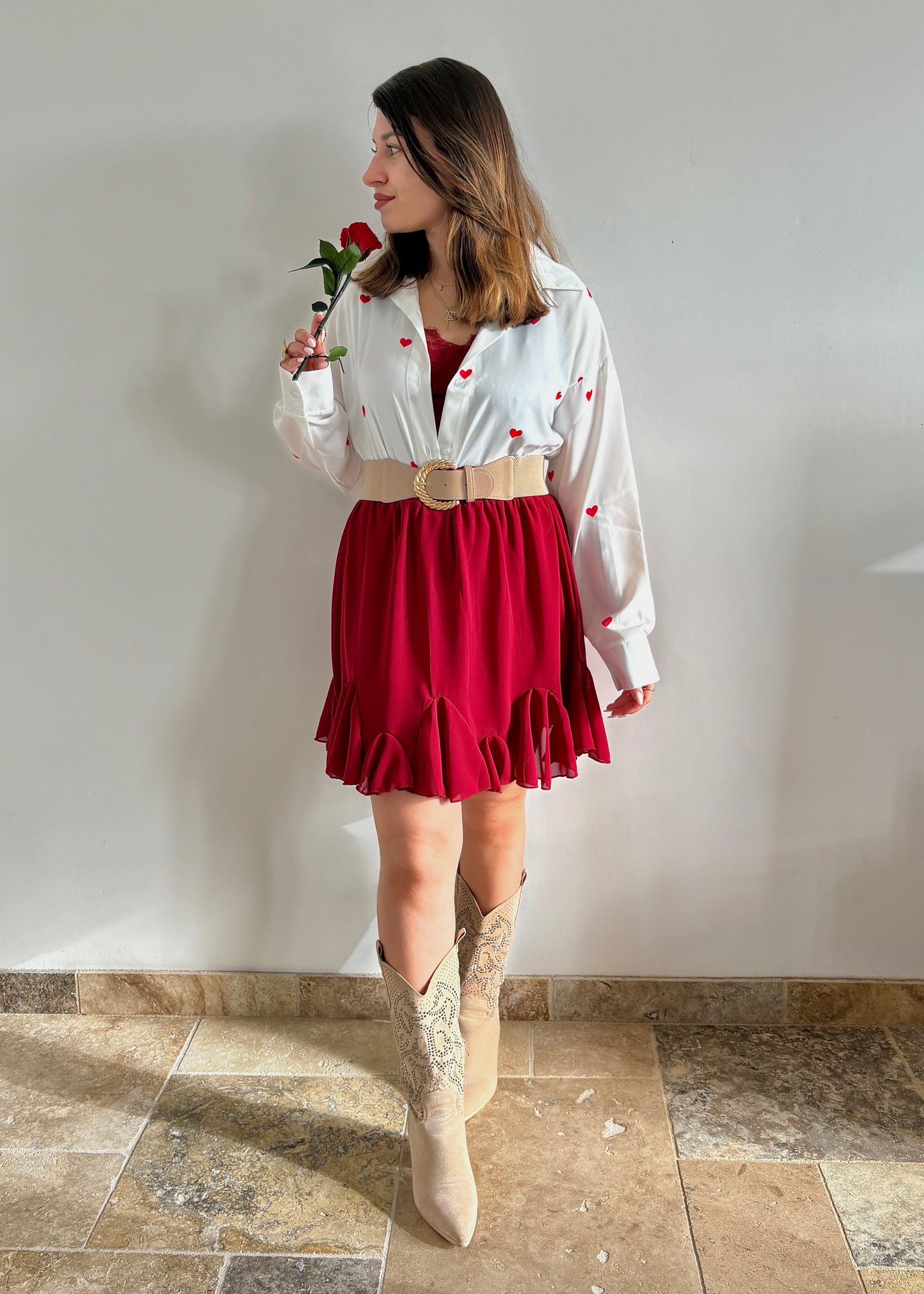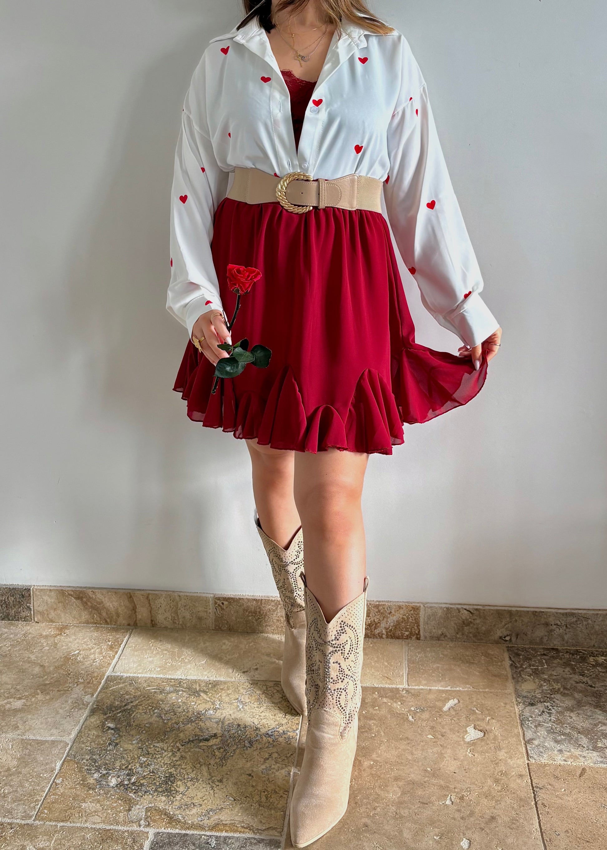 Avec sa matière légère, sa doublure et ses jolis volants sur le bas, la jupe Léona sublimera votre silhouette ✨.