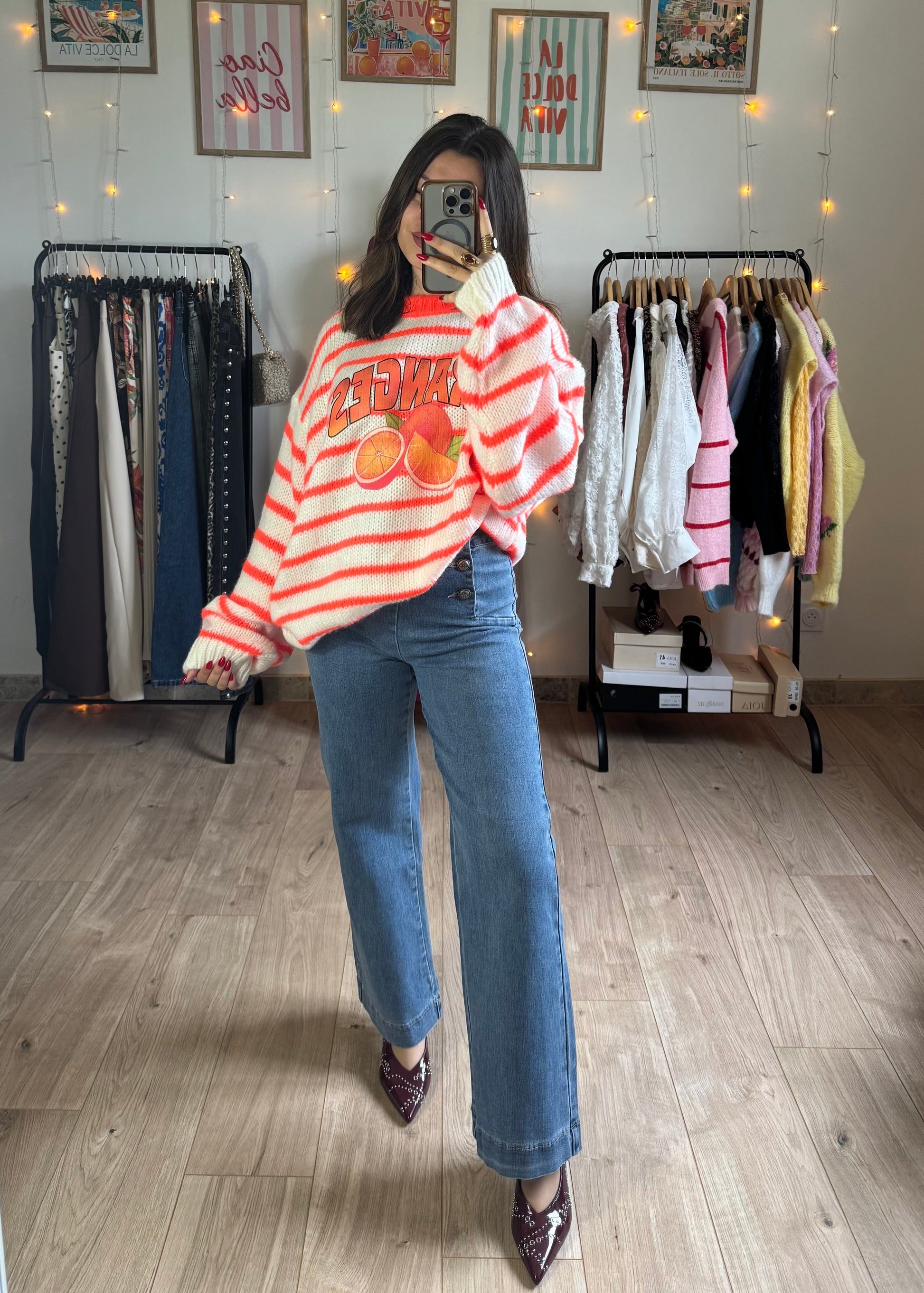 Pull à rayures motifs Oranges