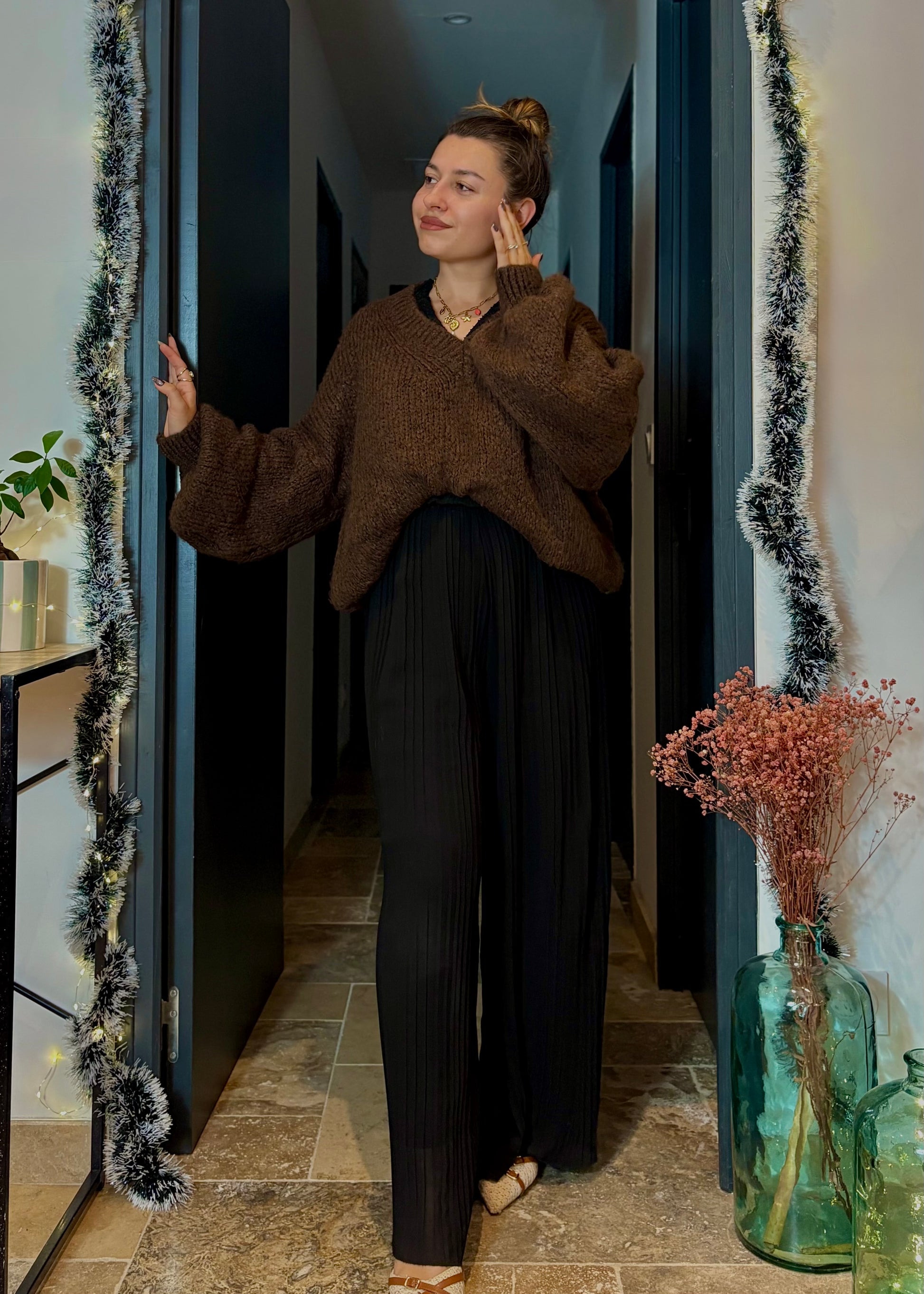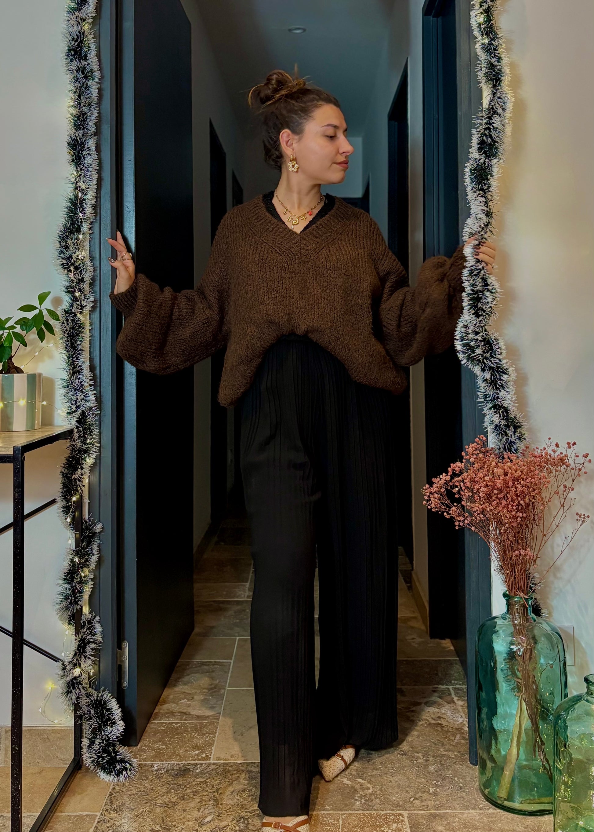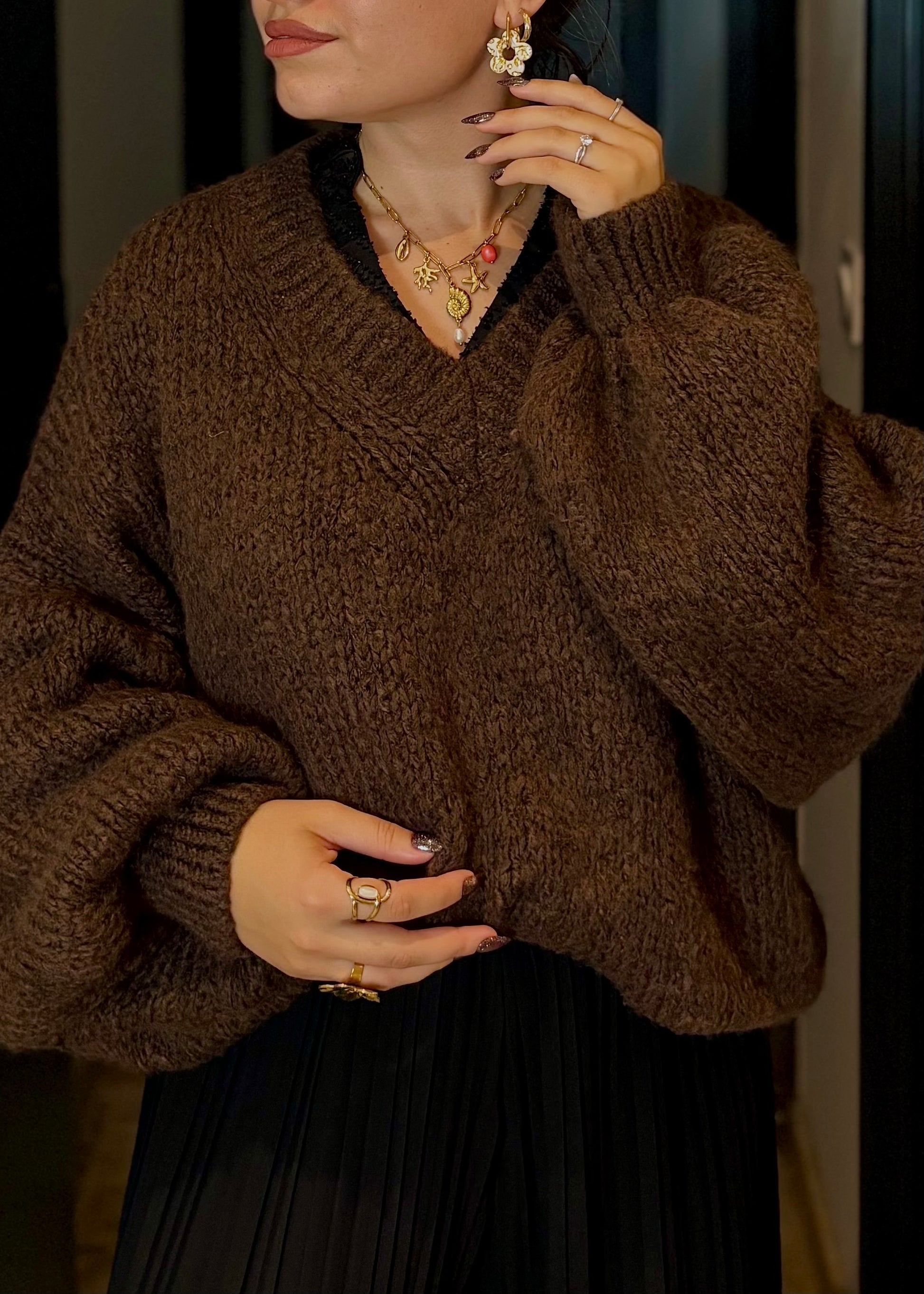 Avec son col en V flatteur et sa maille épaisse ultra douce, ce pull est celui qu’on enfile dès que les températures chutent. Confort total et chaleur garantie, c’est le pull cocooning par excellence.